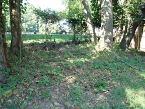 Cons: Most secluded and might invite previously named woodland creatures, plants might have to compete with trees for soil nutrients, and very shaded. (Oh yeah...and I'd have to climb up the hill.)